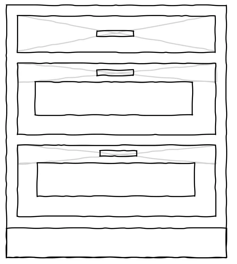 DH4. Hardware pull placed in the middle of the top slab drawer and on the bottom 2 framed drawers the pulls are placed in the middle of the top rail.